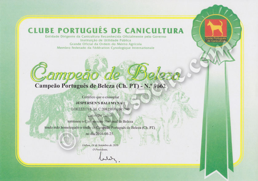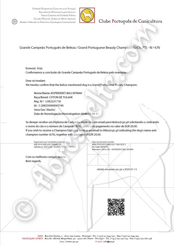 Bali is the son of two-time world champion Flamencoton Bahiya and Calvin du Castell de la Roche aux Fees, and is the grandson of international champion Jespersen's Duende Flamenco. He comes from the best lines of this breed. At 15 months he has already won the Spanish junior Championship, Iberian Junior Championship, Gibraltar Junior Championship and Portugal Junior Championship and has a very promising future.