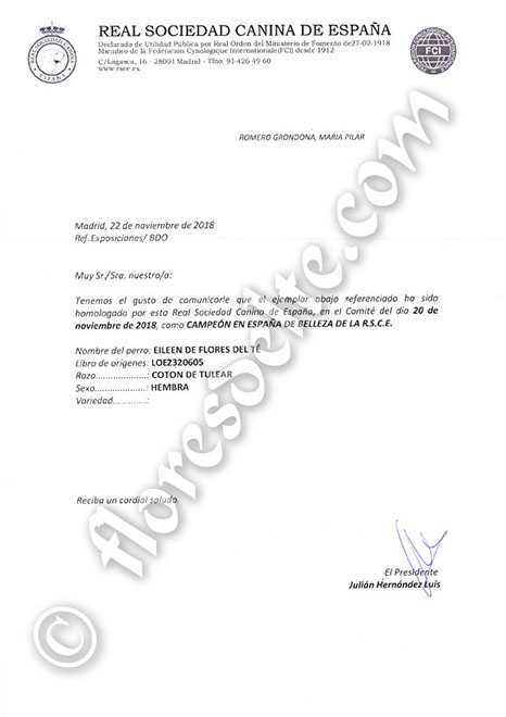 I have no words to thank his breeder Brigitte and her husband Karsten Jespersen for this super coton. From here, thank you very much to both of you for believing in us and trusting us this precious treasure. We have not only increased coton's family, but we are very happy to have your friendship.