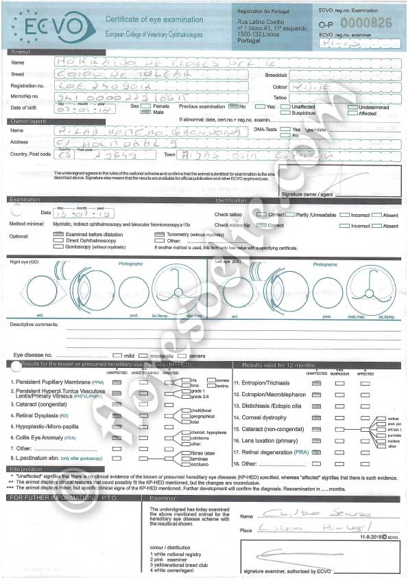 La retinopatía es una enfermedad ocular hereditaria recesiva. Se observan parches más o menos circulares en la retina con elevada acumulación de material que produce lesiones de color gris-marrón-rosado. -Ver más-