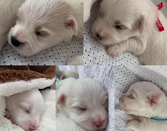 1 female and 4 males: Izumi (Trufa), Igaliku (Wolf), Inuvik, Iboki (Benny) and Iray (Puchi) de Flores del Té