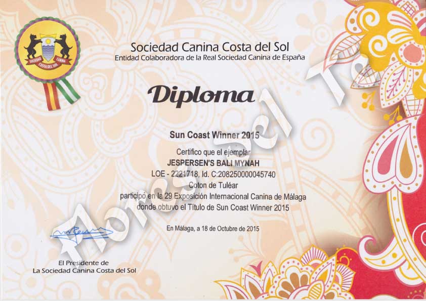 Pedigree: Hijo de Jespersen's Bali Mynah y Quite Divine Bora