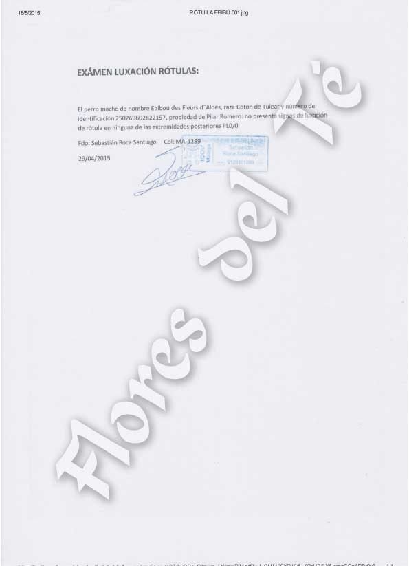 Ebibou es hijo de Artic Prince du Domaine de la Rouviere y de Ukulele des Fleurs d'Aloès, y es nieto y biznieto de Shance de l'Echo des Elingues y Reggae de l'Echo des Elingues, ambos Elite A.