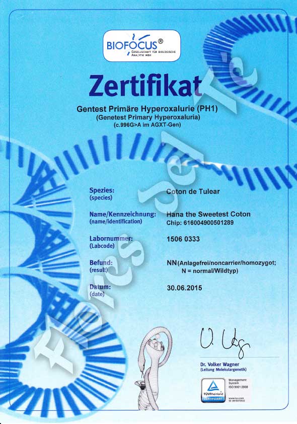 No tengo palabras para agradecer a la criadora Brigitte Jespersen y a su marido Karsten el poder tener con nosotros a este estupendo coton. Desde aquí, muchas gracias a los dos por creer en nosotros y confiarnos a este precioso tesoro. No sólo hemos aumentado la familia de cotones, sino que nos sentimos muy felices de contar con vuestra amistad.